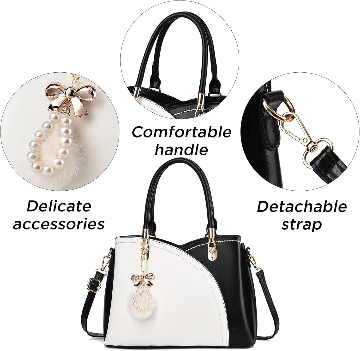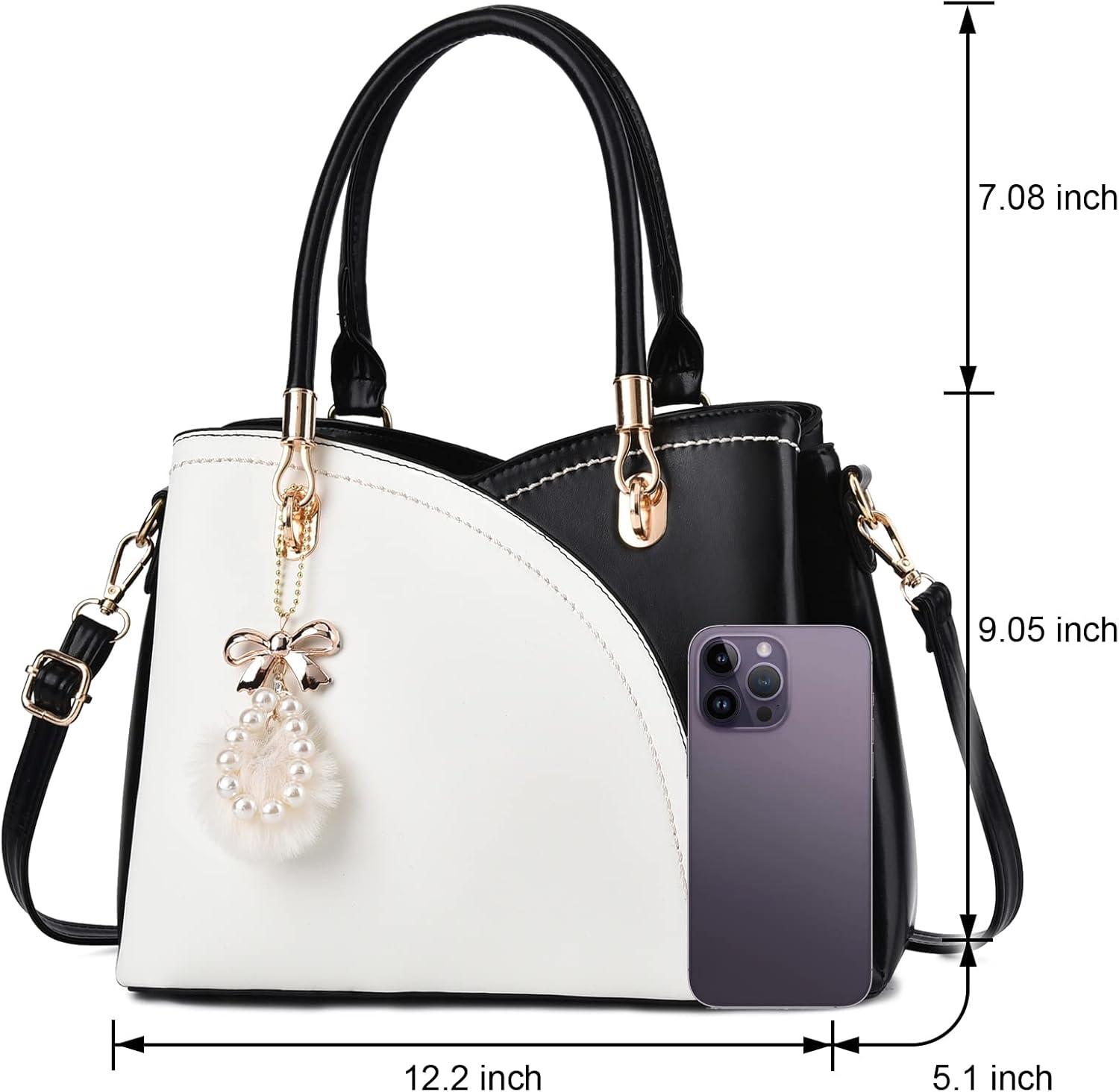 I IHAYNER Womens Leather Handbags Purses Top-handle Totes Satchel Shoulder Bag for Ladies with Pompon(Large White)