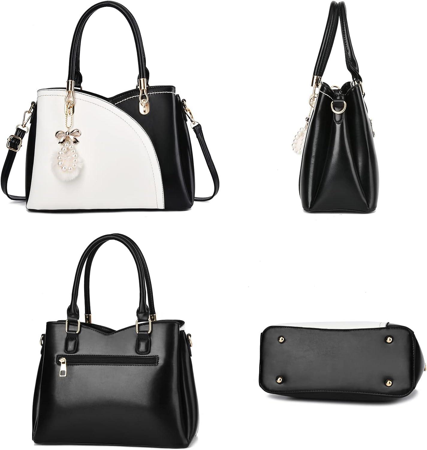 I IHAYNER Womens Leather Handbags Purses Top-handle Totes Satchel Shoulder Bag for Ladies with Pompon(Black)