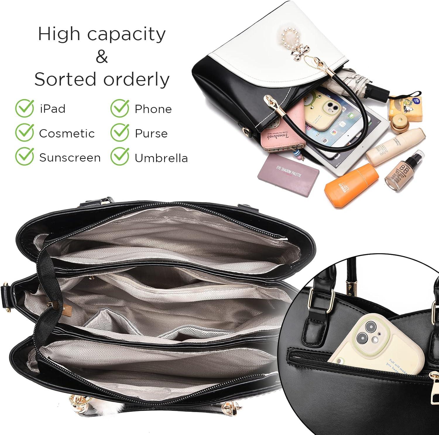 I IHAYNER Womens Leather Handbags Purses Top-handle Totes Satchel Shoulder Bag for Ladies with Pompon(Large Black)