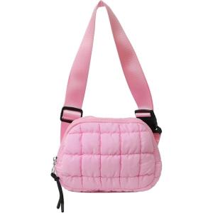 I IHAYNER Quilted Puffer Belt Bag Fanny Waist Packs Small Crossbody Bag with Adjustable Strap for Traveling Hiking White(Pink)