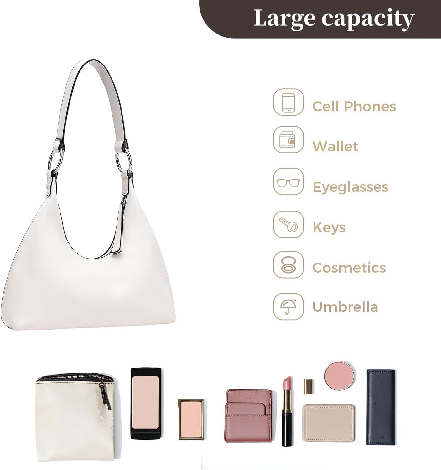 I IHAYNER Leather Shoulder Bag for Women Crescent Shoulder Purse Small Hobo Purse Retro Clutch Classic Underarm Tote Bag(Beige)