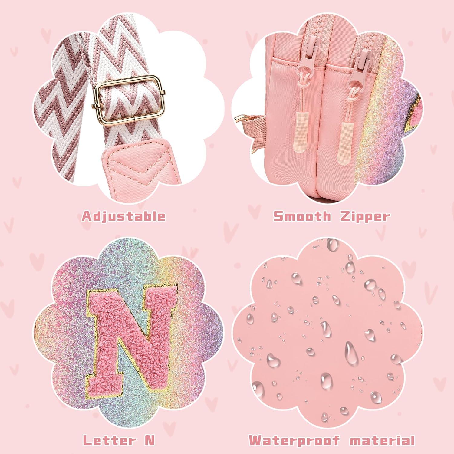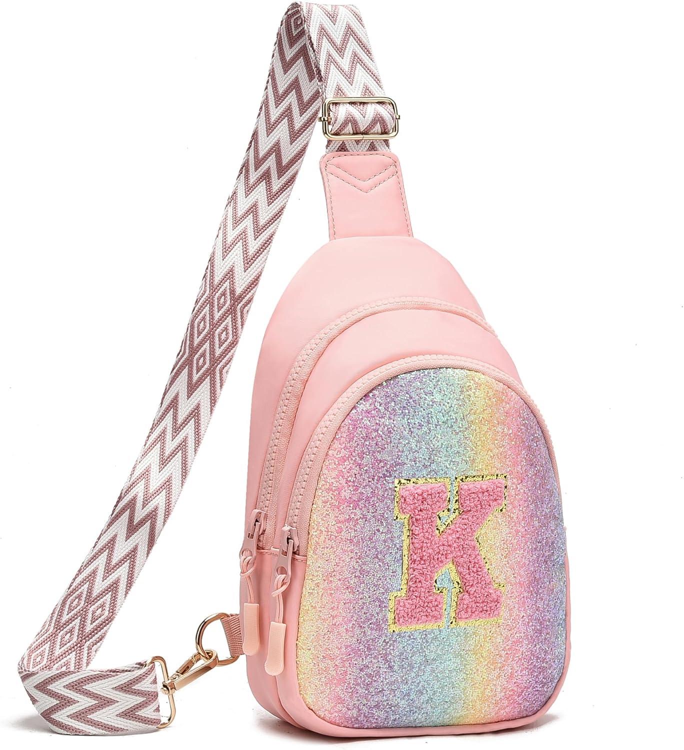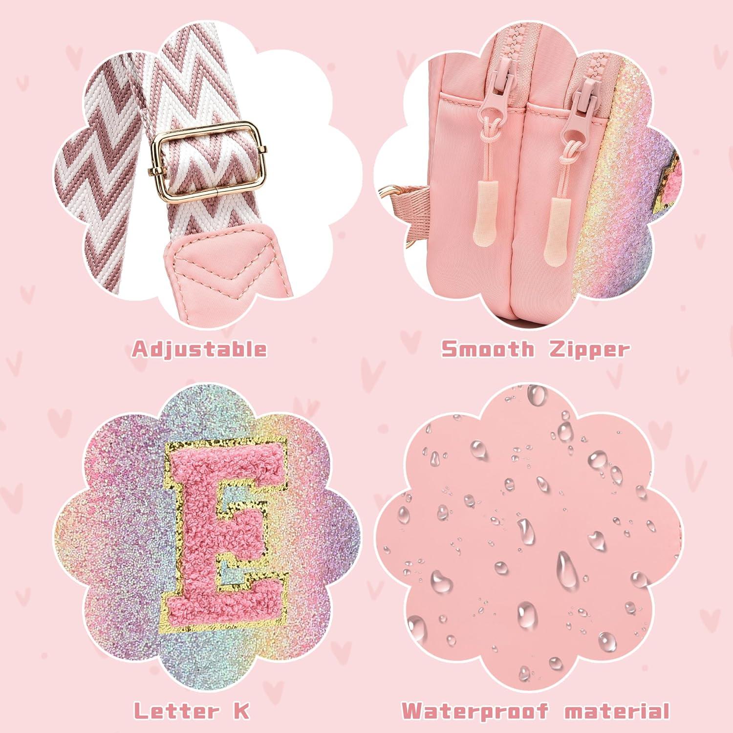 I IHAYNER Birthday Gifts for 3 4 5 6 7 8 9 10 11 12 13 Year Old Girls Small Initial Sling Bag for Travel Cute Crossbody Bag (Purple-K)(Pink)