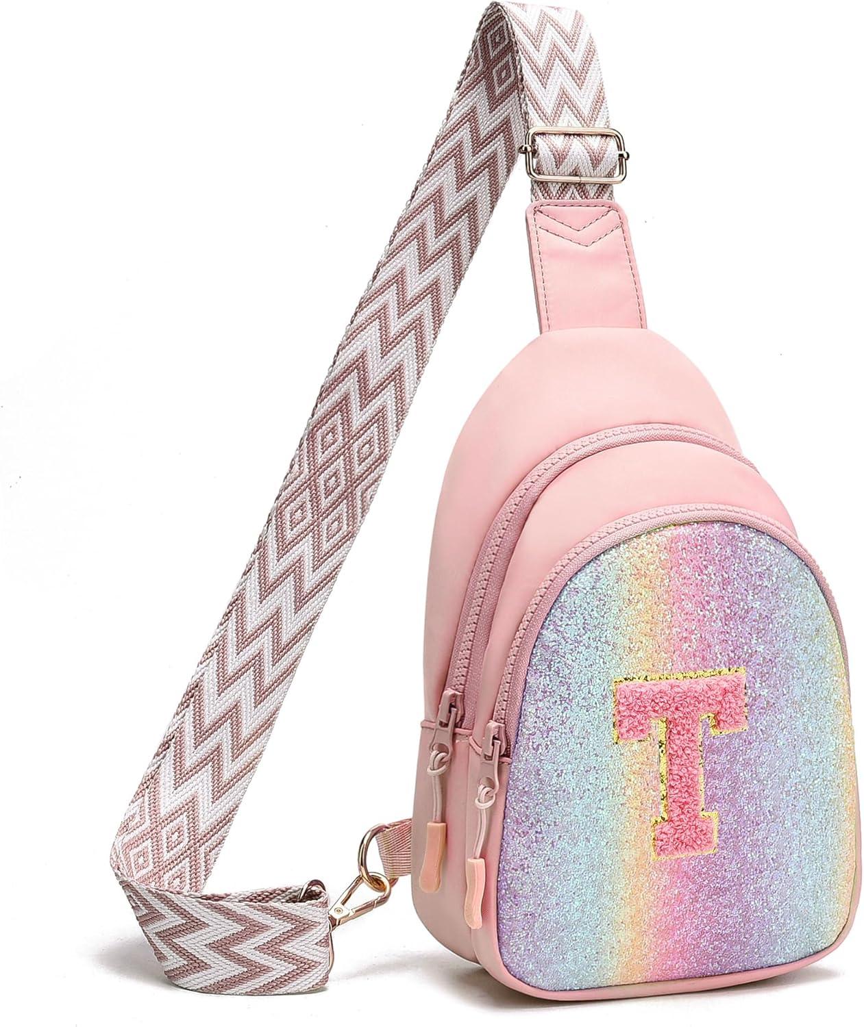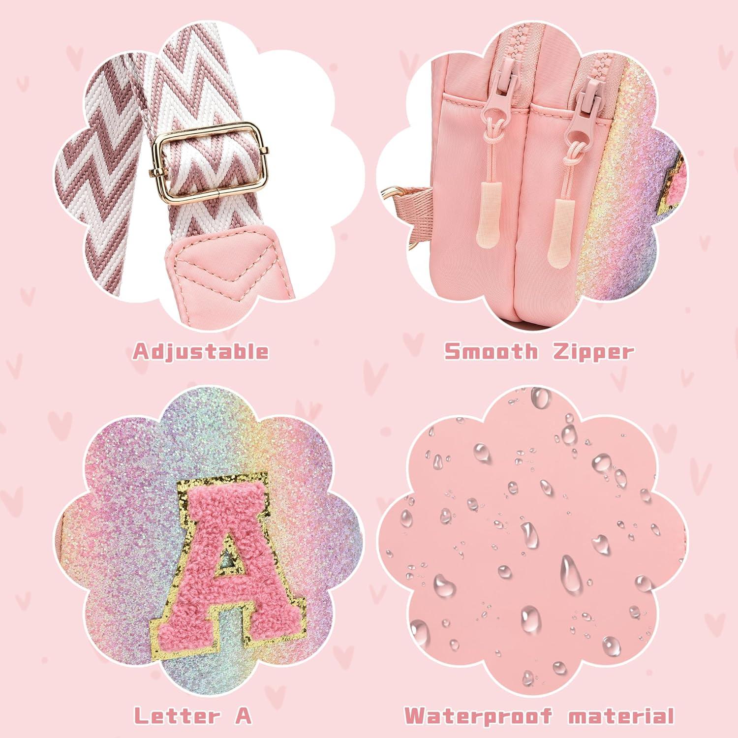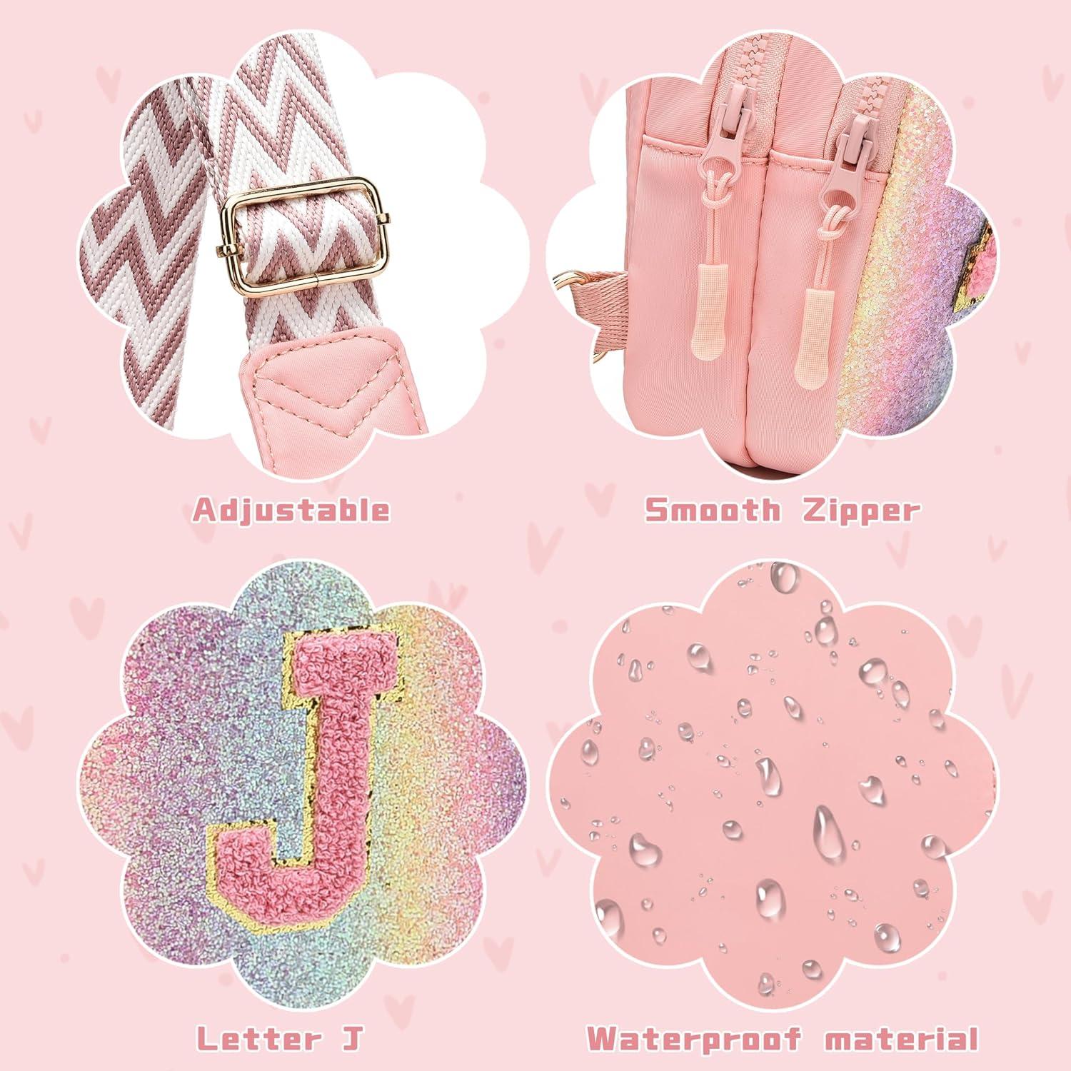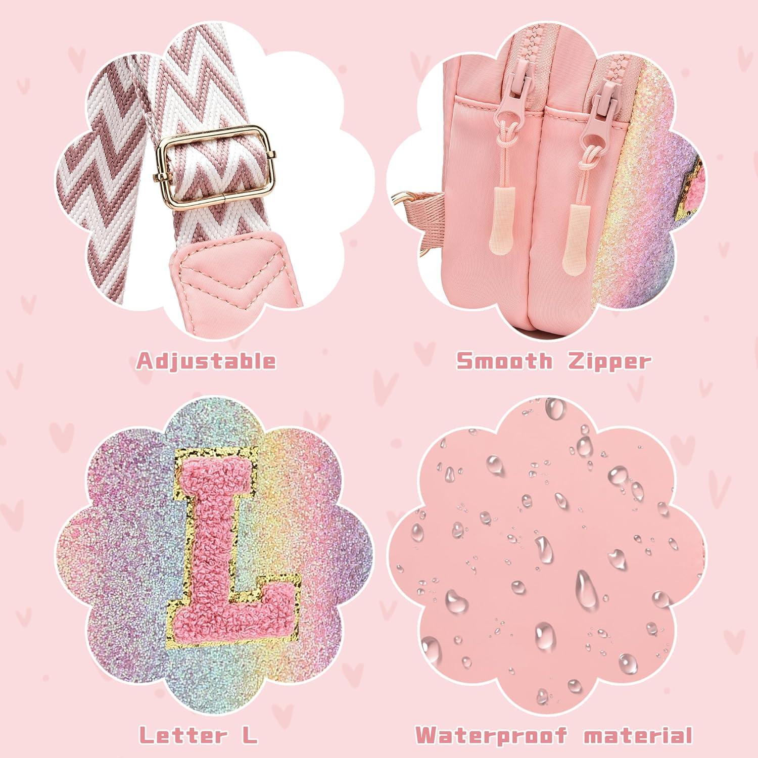 I IHAYNER Birthday Gifts for 3 4 5 6 7 8 9 10 11 12 13 Year Old Girls Small Initial Sling Bag for Travel Cute Crossbody Bag (Purple-K)(Pink)
