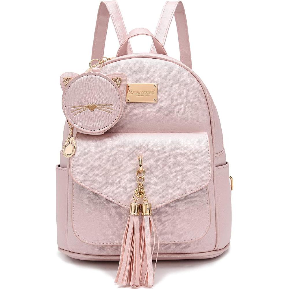 I IHAYNER Girls Fashion Backpack Mini Purse Backpack for Women Small Leather Backpack Purse for Teen Girls with Coin Purse(Gold Pink)