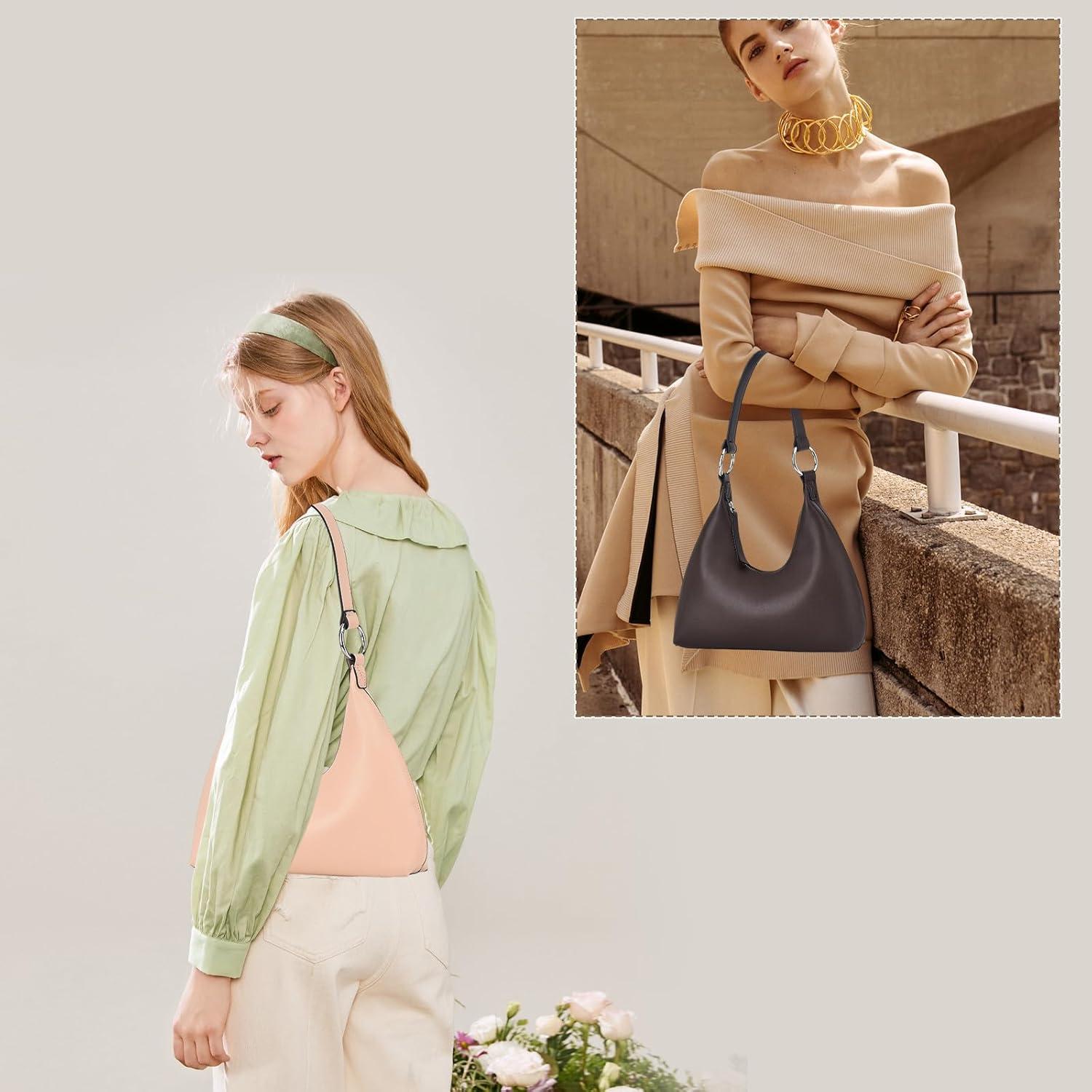 I IHAYNER Leather Shoulder Bag for Women Crescent Shoulder Purse Small Hobo Purse Retro Clutch Classic Underarm Tote Bag(Beige)