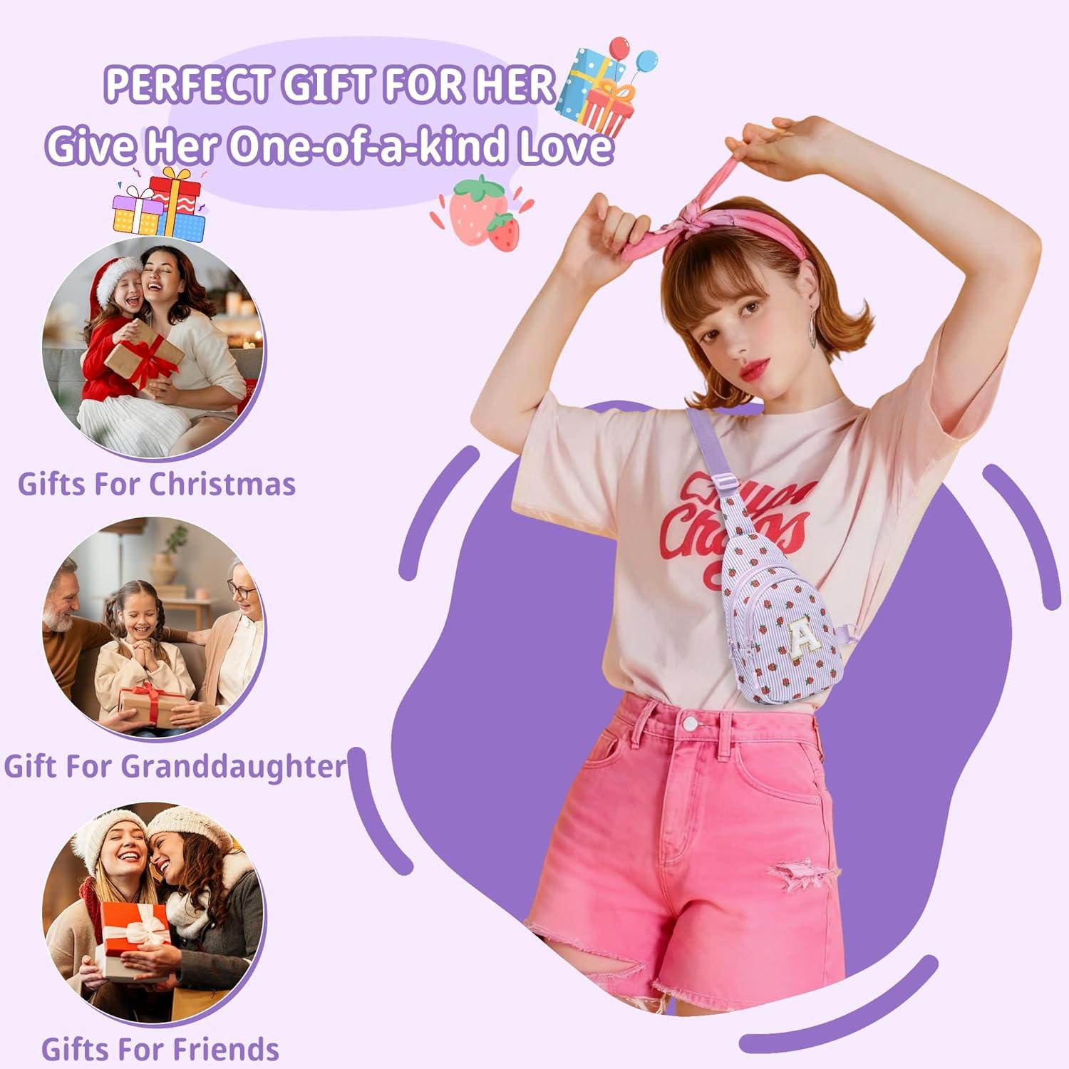 PERFECT GIFT IDEA — GREAT FOR CHRISTMAS & BIRTHDAYS: With its personalized letter design and cute strawberry print, this fanny pack makes a thoughtful gift for women and girls. A perfect choice for Christmas gifts, birthday gifts, holiday presents, or anytime you want to surprise someone with something stylish and functional