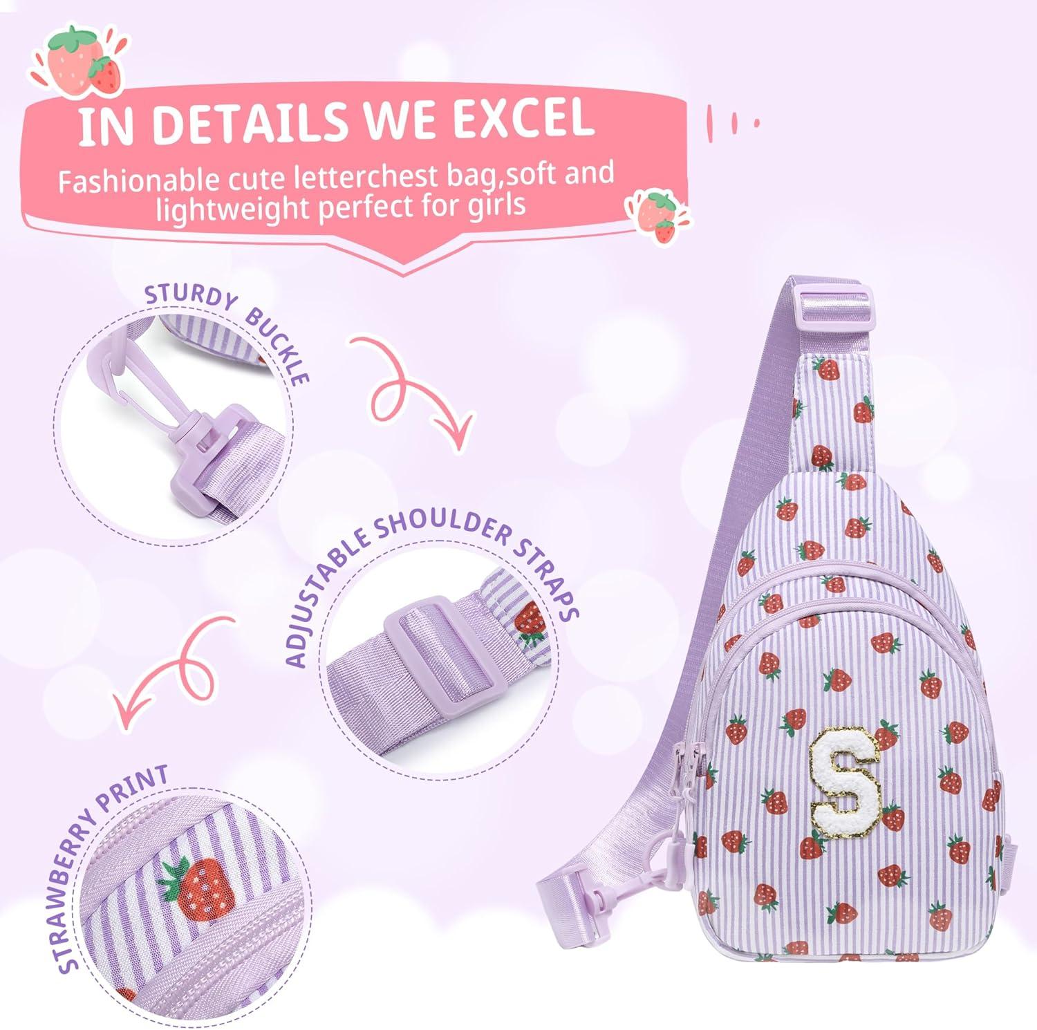 I IHAYNER Small Initial Sling Bag for Gilrs Christmas Gifts for Kids Girls – Birthday Gifts for 3 4 5 6 7 8 9 10 11 12 13 Year Old Girls Crossbody Bag Purse Cute Personalized Trend Stuff Strawberry-A(Strawberry-M)