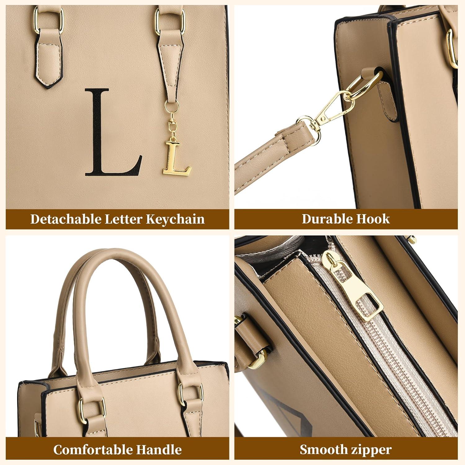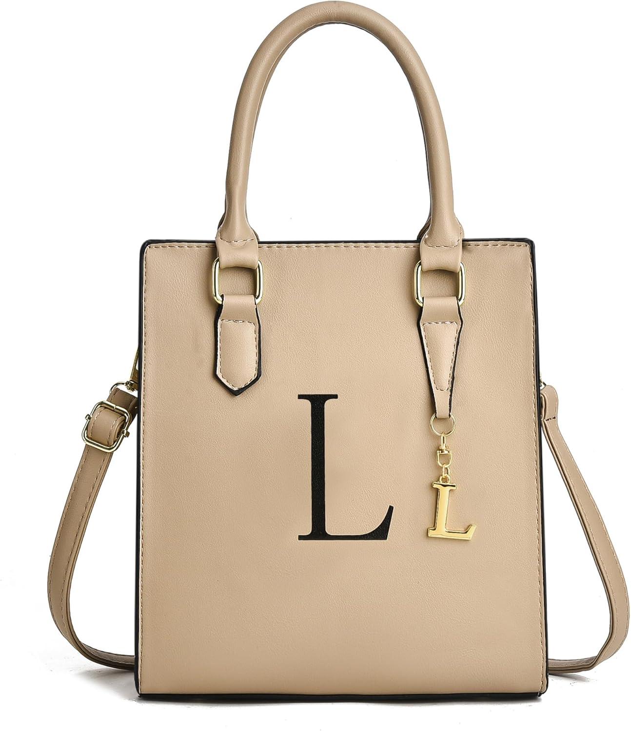 I IHAYNER Women Tote Bags Trendy Personalized Initial Shoulder Bag Top Handle Satchel Purse for Women Crossbody Hobo Handbags(Khaki-l)