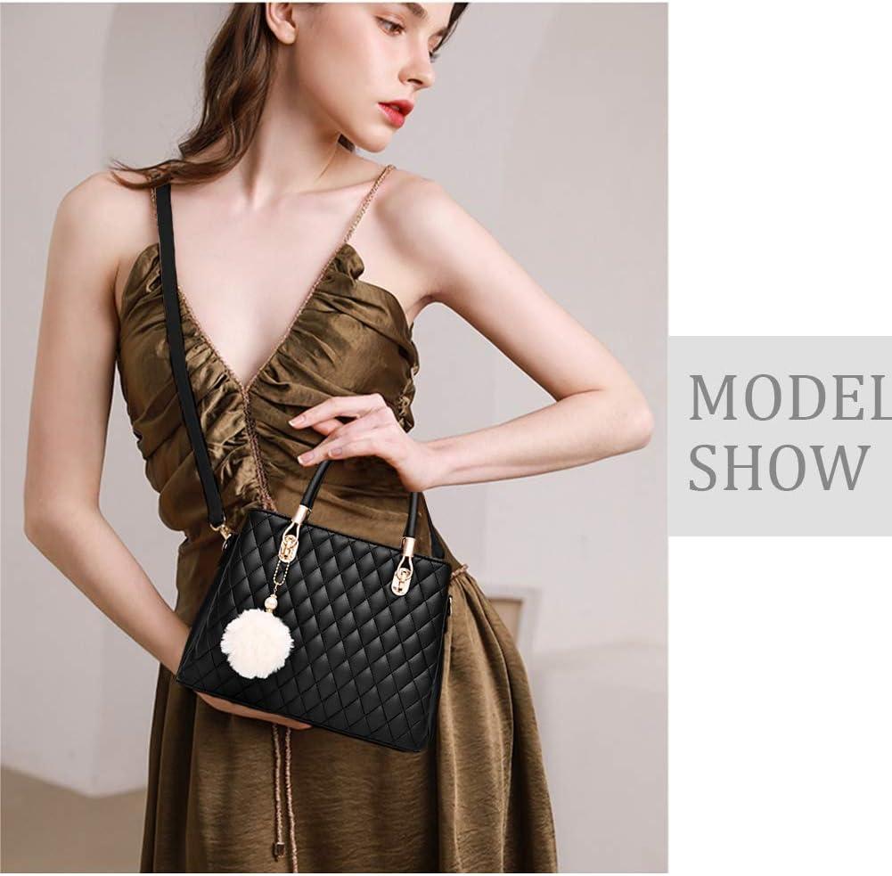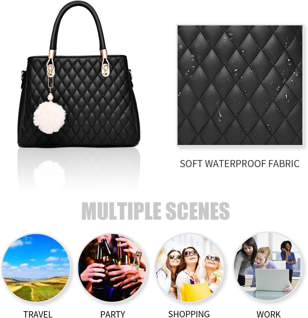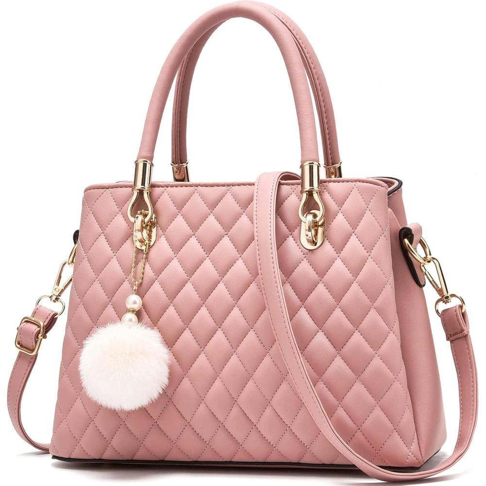 I IHAYNER Womens Leather Handbags Purses Top-handle Totes Satchel Shoulder Bag for Ladies with Pompon(Pink)