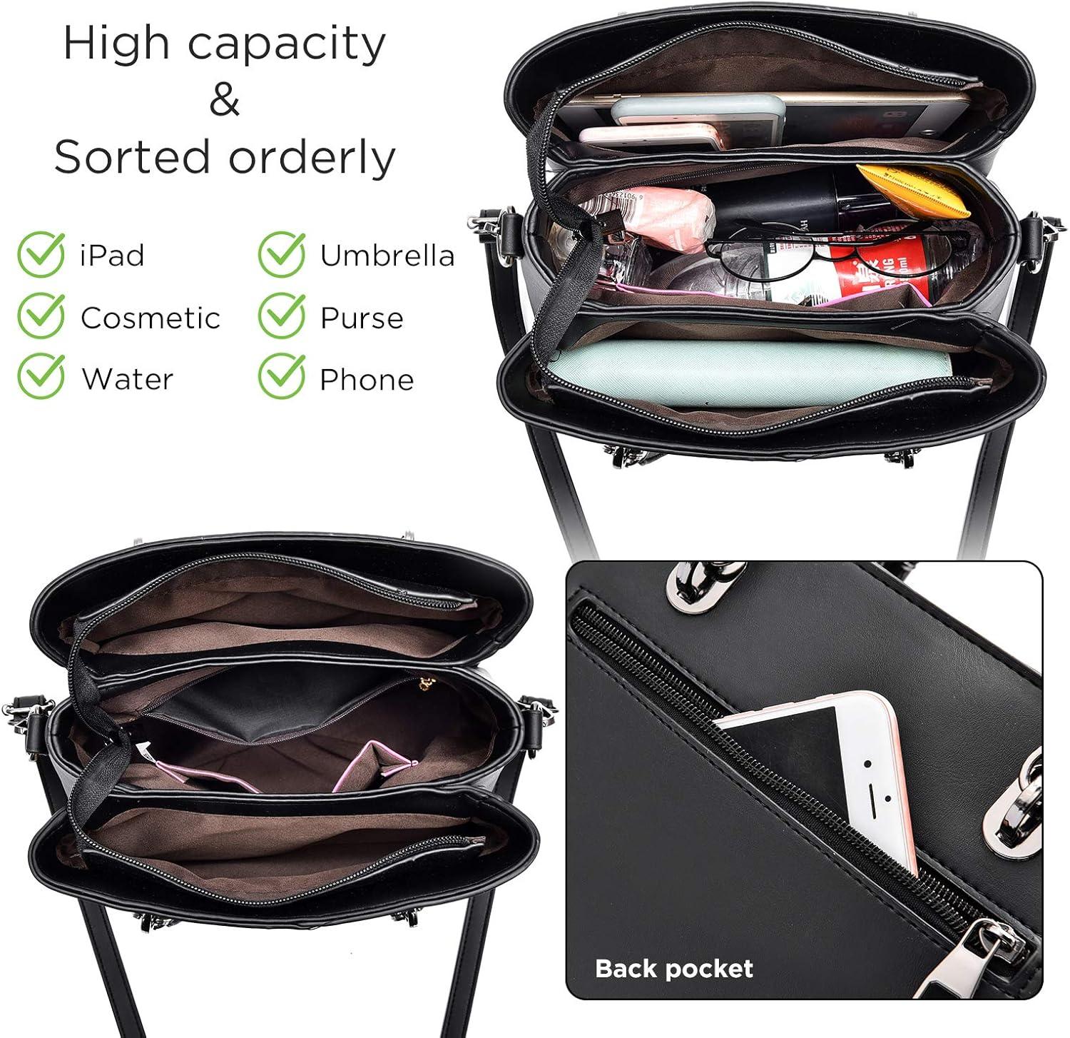 Womens Leather Handbags Purse Top-handle Bags Contrast Color Stitching Totes Satchel Shoulder Bag for Ladies(Pink)